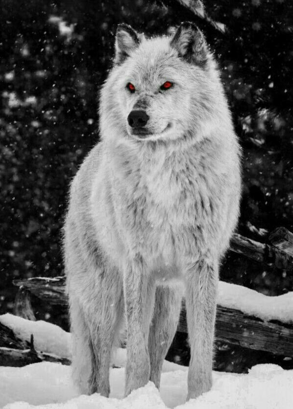 Pelaje completamente blanco con ligeros detalles grises y negros que resaltan la forma de sus orejas y su morro. Sus ojos de color rojo sangre y un gesto no tan imponente. Su forma licántropa está caracterizada por una complexión delgada, ligeramente fuerte pero sobretodo una agilidad imparable. Es astucia y no mano dura pese a que, en su transformación total, esta astucia a veces se pierde en una impulsividad sobremedida. Las pocas vidas pasadas le hacen ser realmente impulsivo, inutil ante un combate contra un alfa puro pero bastante competente contra otros subgéneros. Este lobo no destacará por ser el más fuerte ni el más aterrador sino por aquello que no se espera tanto de los lobos. Su forma es de 175 cm de longitud y solo 95 cm de alto.